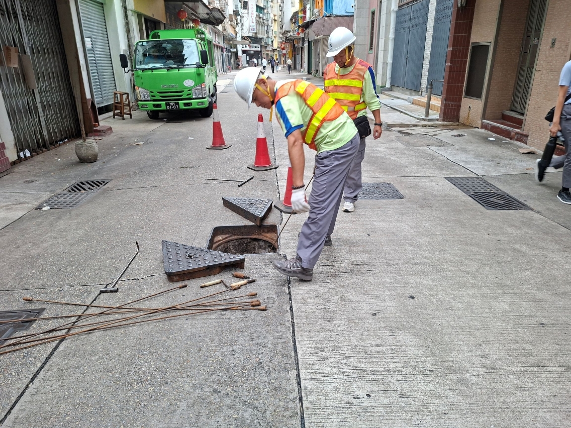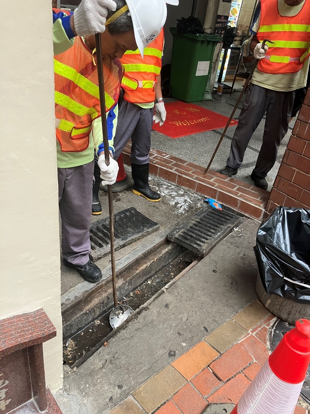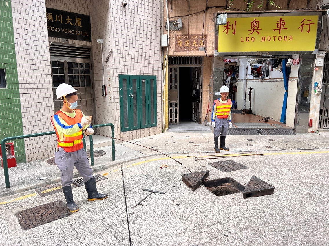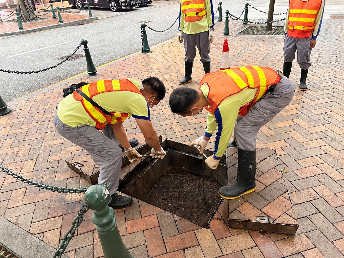 市政署在安全情况下,继续派员巡查及疏通各区渠道,以免堵塞影响排水。