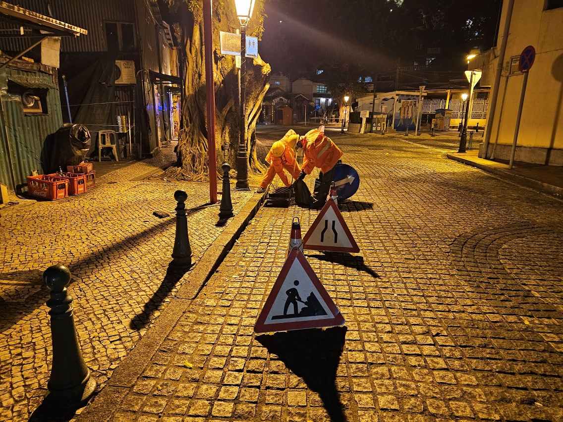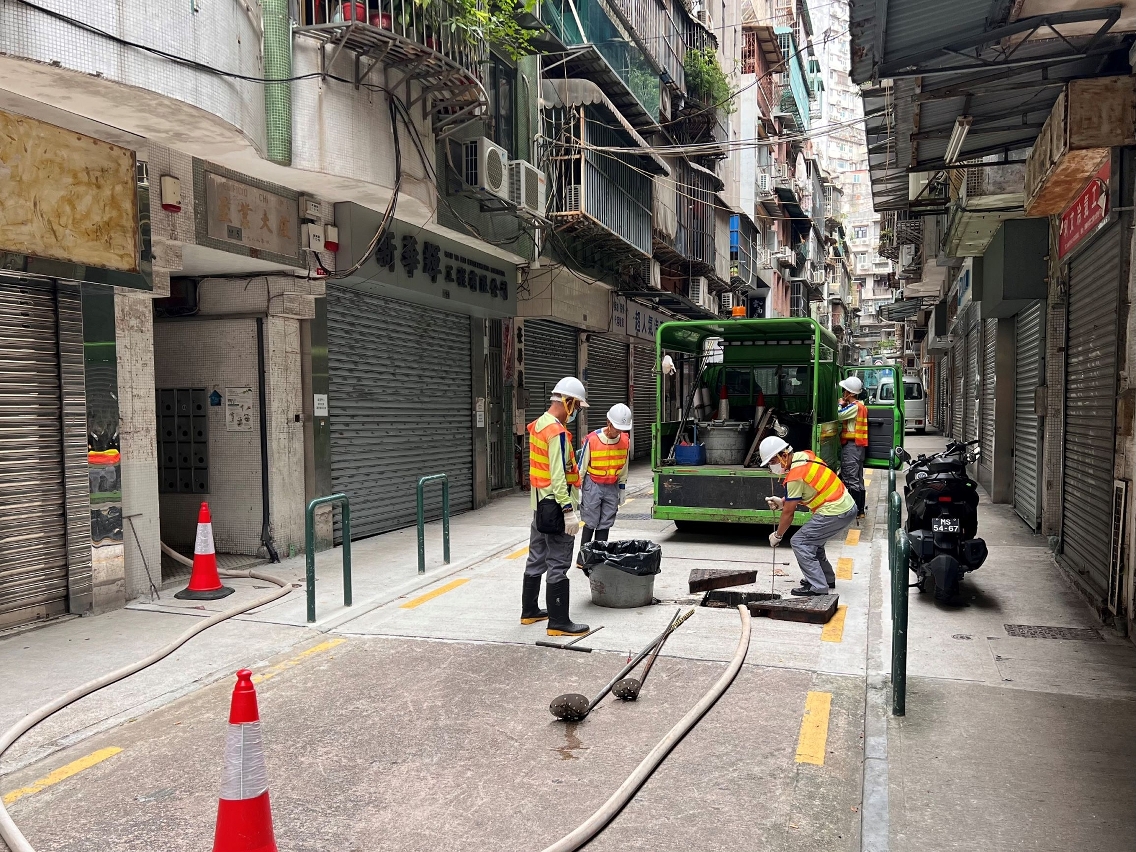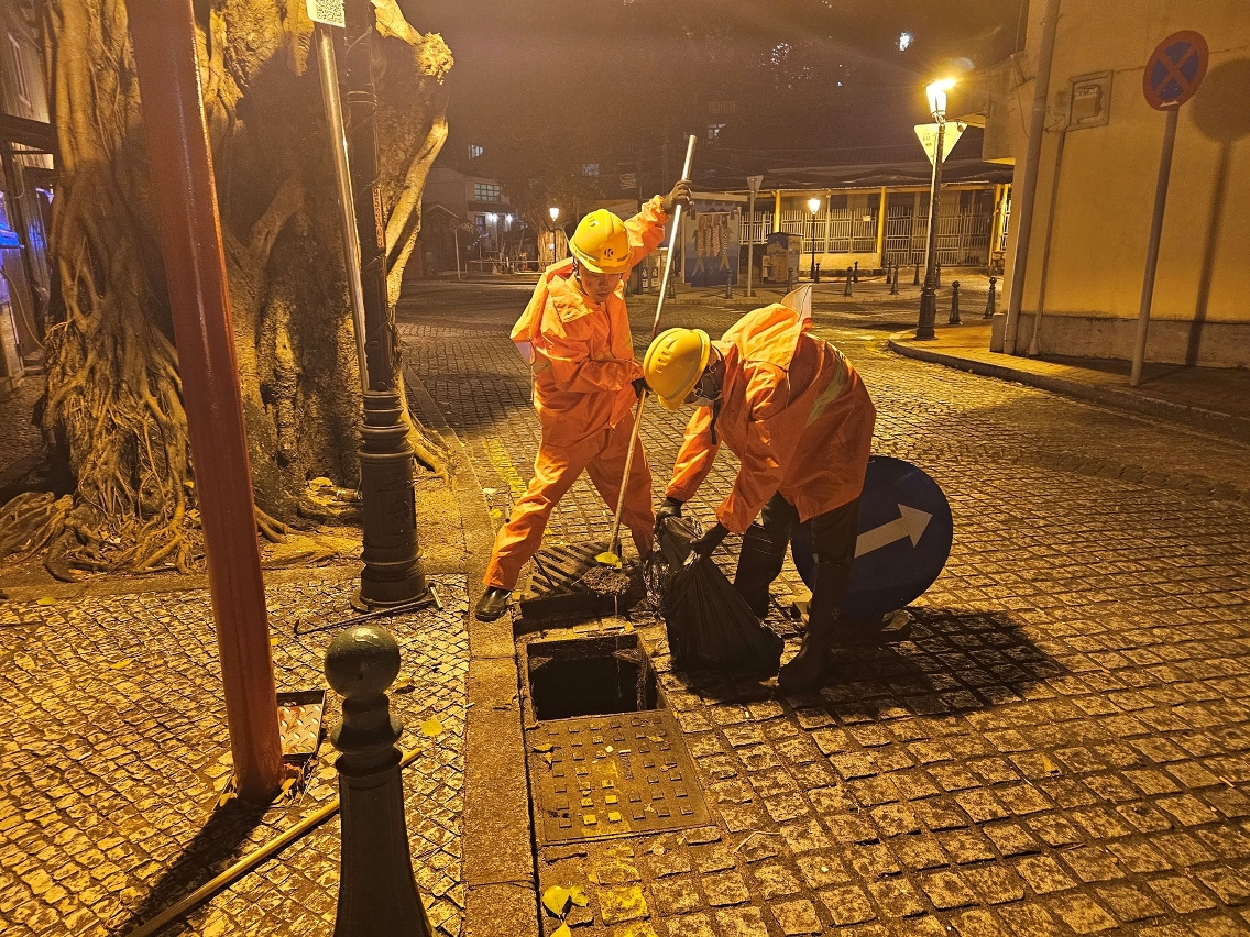 市政署在安全情况下,继续派员巡查及疏通各区渠道,以免堵塞影响排水。