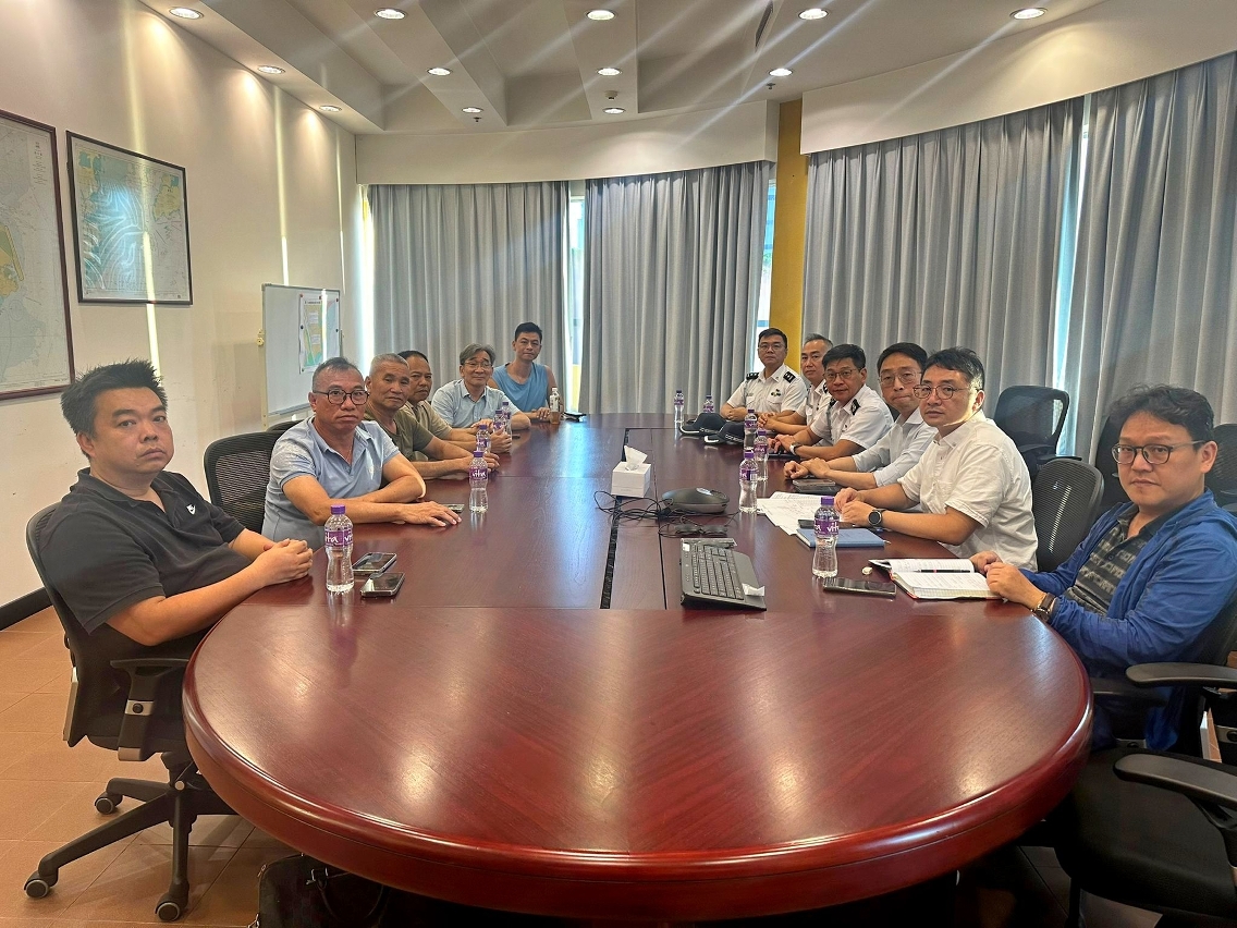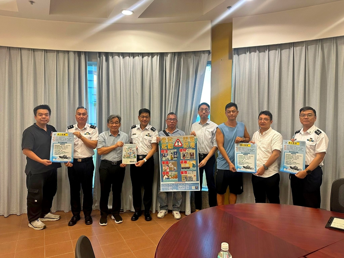 为减少台风吹袭对海事业界的风险,今日(23日)早上,海事及水务局联同珠海海事局等的海事相关部门,于内港一带的各自管理区域进行安全排查,检查内港一带的通航设施,同时登上多艘船只呼吁船东做好防风措施,提醒业界绑好船缆,留意台风和风暴潮消息,及早作出应对。