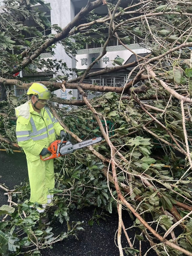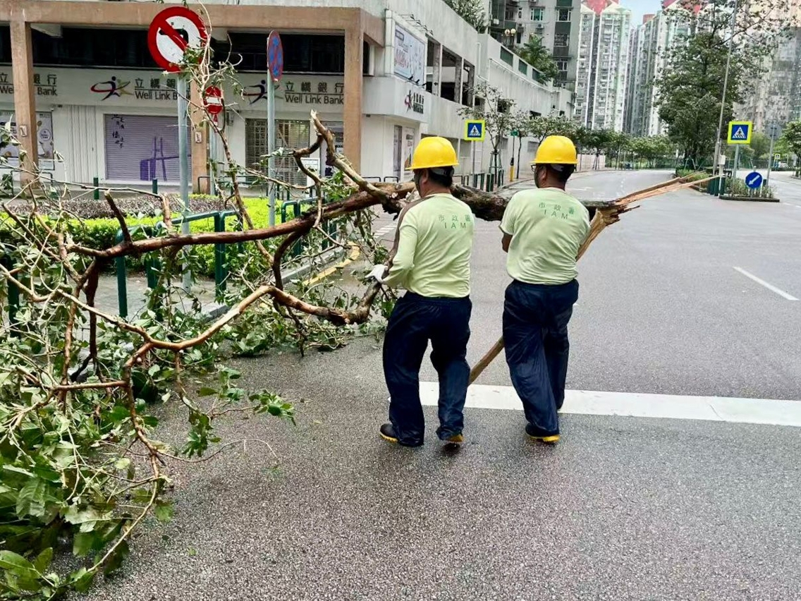 台风吹袭期间,在民防中心统筹下,市政署接获树木受损及倒塌报告,在安全情况下优先清理阻碍交通干道之塌树断枝,保障紧急车辆通行。为保障公众安全,风球除下后,将主力排查主干道及全澳校区周边树木受损情况,目标是在八号风球除下24小时内完成清理主干道塌树。