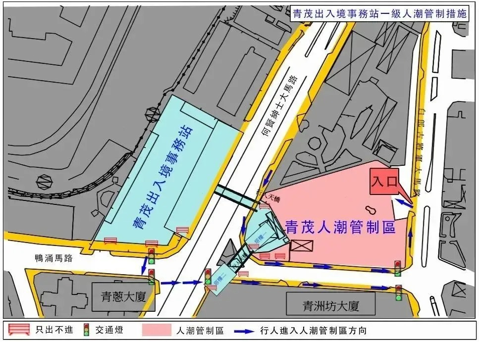 当青茂口岸离境大堂出现大量通关人士导致人潮挤拥时,将会实施人潮管制措施。