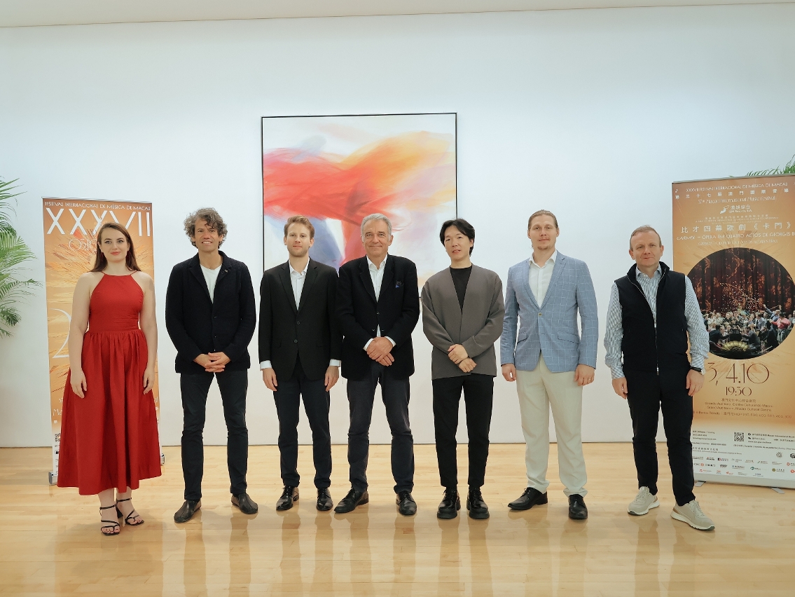 文化局于9月29日举行传媒见面会,邀请演出团队与媒体交流分享,澳门国际音乐节节目总监廖国敏,《卡门》导演安德烈亚斯.贺莫奇、复排导演约多克.施华泽、指挥艾云.古尔伯格.贤森、饰演米卡拉的女高音玛丽亚.高卡列娃、饰演唐.荷西的男高音马修.怀特,以及中国交响乐团合唱团合唱指挥马可.贝雷依等出席。