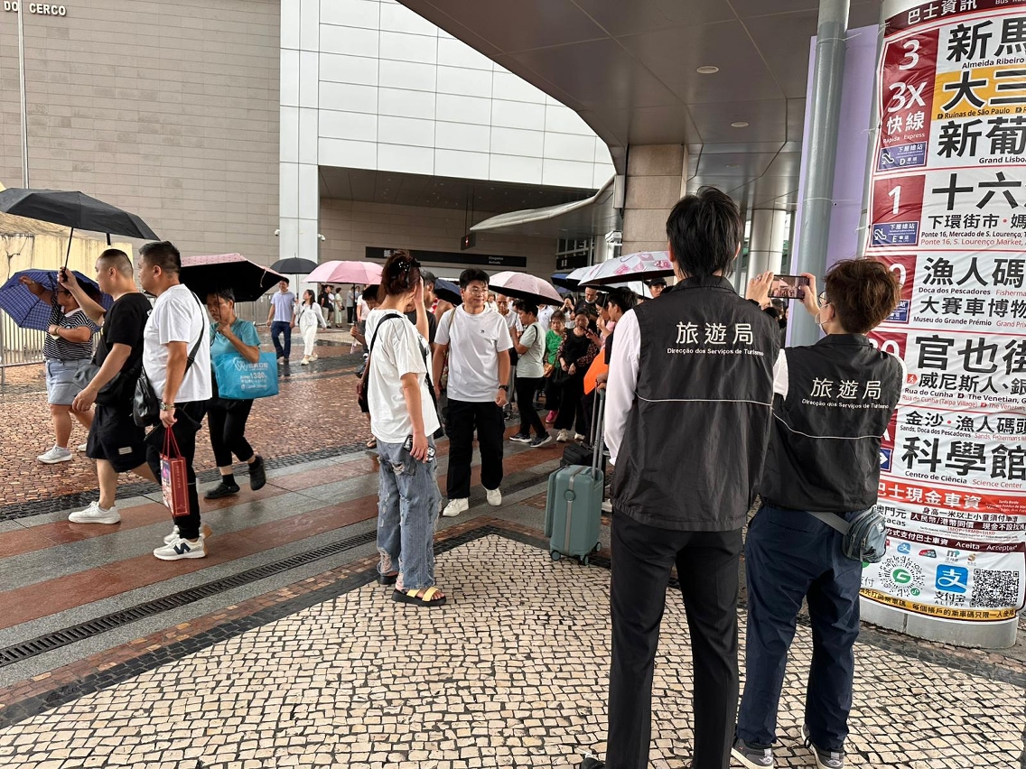 随着台风“麦德姆”逐渐远离澳门,旅游局派员巡查酒店业场所、出入境口岸及旅游景点,了解台风后的恢复情况。