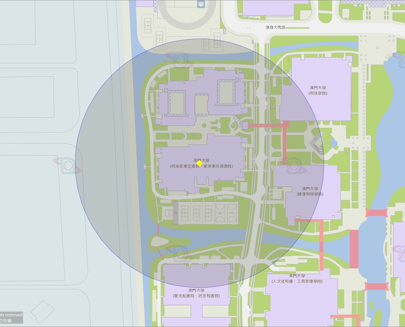 • 澳门大学附近风险区域200米半径范围