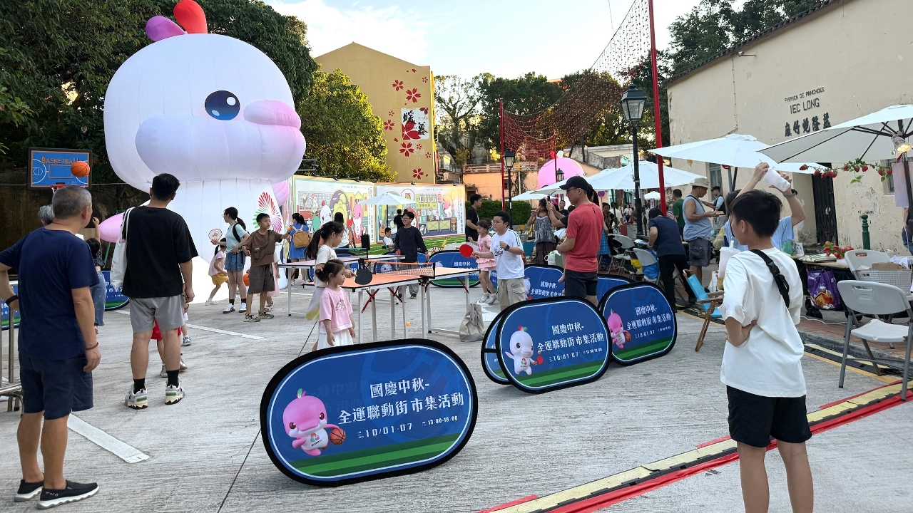 氹仔旧城区的临时行人专用区打造“国庆中秋‧全运联动街”主题,第十五届全国运动会及全国第十二届残疾人运动会暨第九届特殊奥林匹克运动会澳门赛区筹备办公室在益隆炮竹厂入口处,放置十五运会及残特奥会吉祥物装置“喜洋洋”及“乐融融”以及纪念品专卖摊位,增添十五运会浓厚氛围。