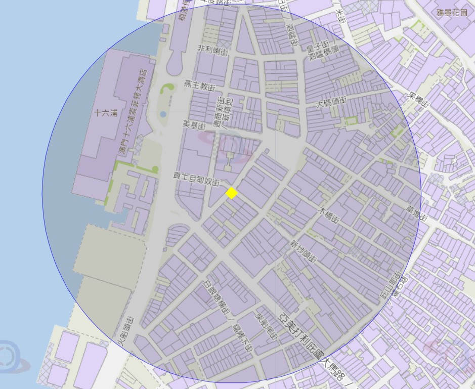 爹美刁施拿地大马路(近新马路一段)附近风险区域200米半径范围