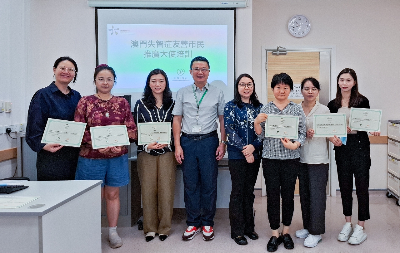 卫生局与社会工作局于7月及8月合办了两场“失智症友善市民”推广大使培训,对象分别为救世军睿禧长者综合服务中心、康晖长者日间护理中心和黑沙环明晖护养院,以及城市大学大健康学院和澳门镜湖护理学院的专业人士,共有14名相关专业人士完成培训并成为推广大使。培训内容包括失智症相关医疗知识及友善市民先导计划等,旨在加深参与者对失智症的认识,共同推动友善社区氛围。