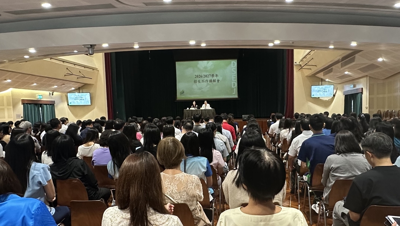 教育及青年发展局于2025年10月10日假圣罗撒女子中学(中文部)千禧堂举行2026/2027学年招生工作讲解会,非高等教育厅中学教育处处长梁怡安和小学及幼儿教育处处长贾诗燕向学校说明2025/2026学年“学校招生指引”的最新资讯,以及介绍2026/2027学年各教育阶段首次及非首次入学的招生安排。