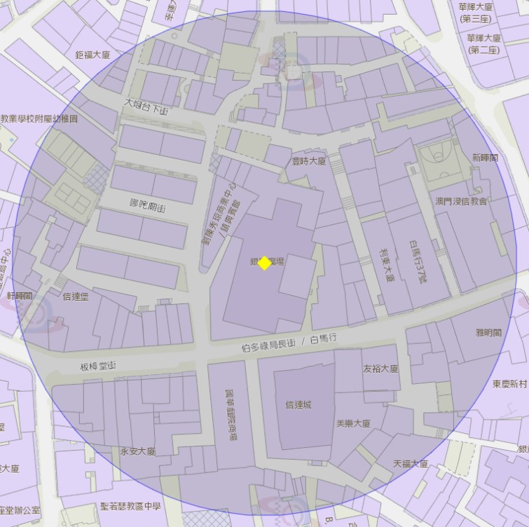 氹仔海洋花园荷花苑附近风险区域100米半径范围