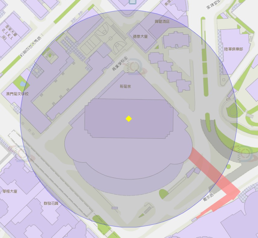 新葡京娱乐场附近风险区域100米半径范围