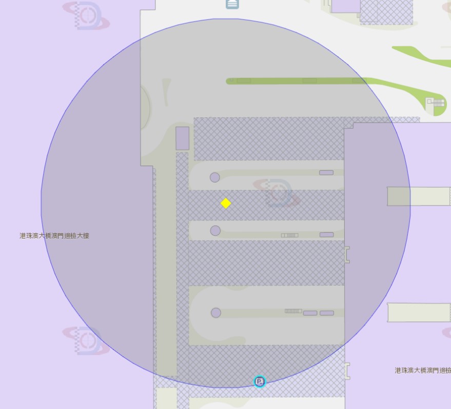 港珠澳大桥边检大楼巴士站附近风险区域100米半径范围