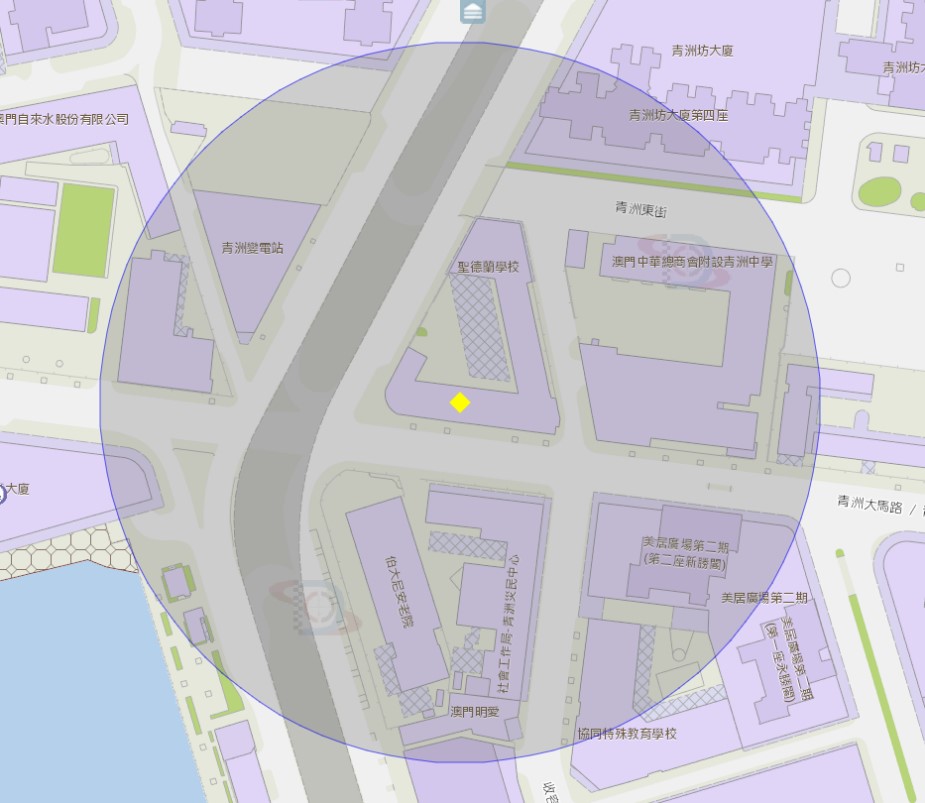 青洲/圣德兰学校巴士站附近风险区域100米半径范围
