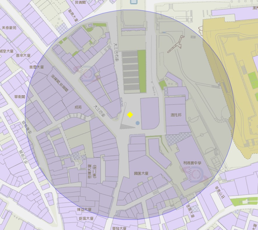 大三巴牌坊附近风险区域100米半径范围