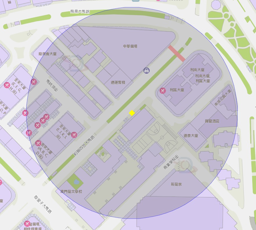 「约翰四世大马路」巴士站附近风险区域100米半径范围