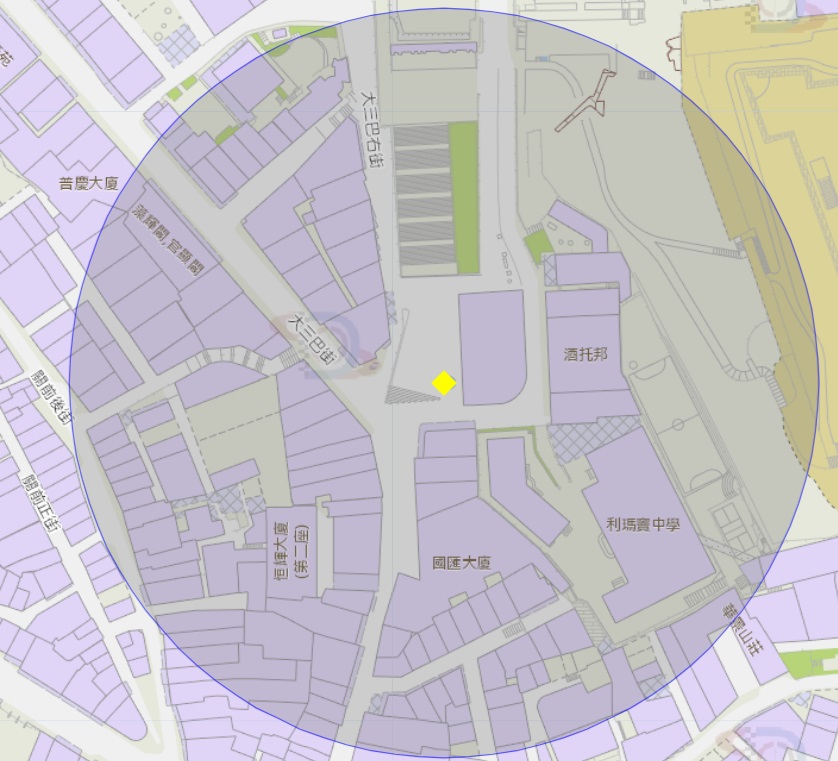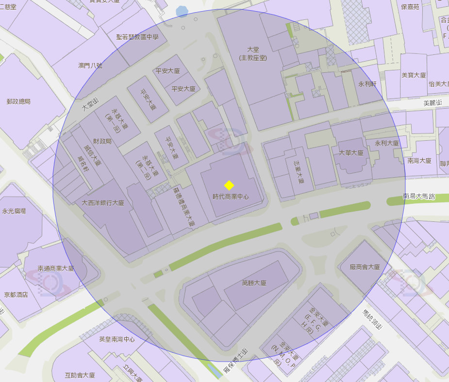 大三巴附近风险区域100米半径范围