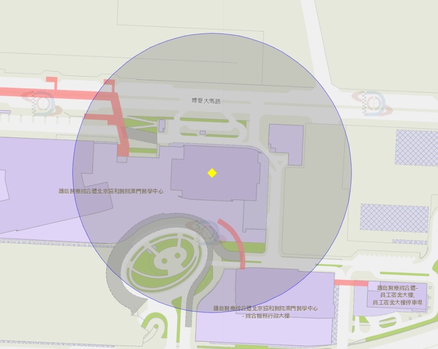 卫生局离岛急诊站附近风险区域100米半径范围