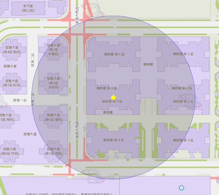路环石排湾乐群楼第五座附近风险区域100米半径范围