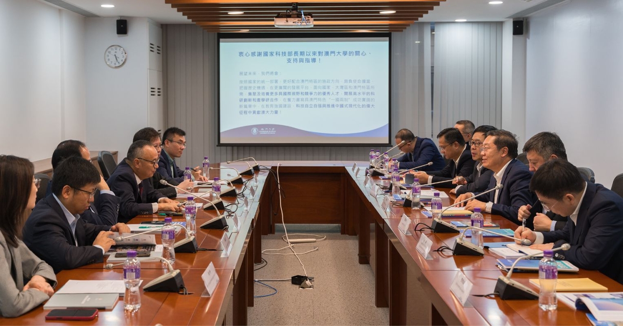 国家科技部副部长陈家昌率领代表团访问澳门大学,获澳大校长宋永华、副校长葛伟热情接待,双方就进一步加强内地与澳门的科技合作与交流进行深入探讨。