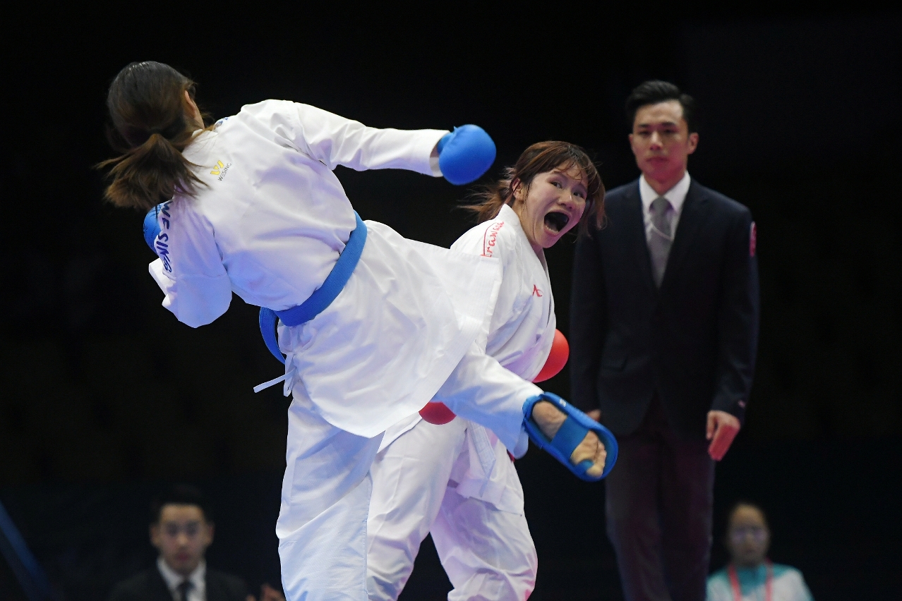 空手道队在女子组手-55公斤级派出方文慧(FONG MAN WAI)及李康乔(LEI HONG KIO)参赛,二人在16强相遇,胜出的方文慧(FONG MAN WAI)晋级8强后展示出冲击奖牌决心,越战越勇闯入决赛,而李康乔(LEI HONG KIO)亦因此获得复活赛资格,方文慧(FONG MAN WAI)决赛面对河南队,以2比0击败对手,为澳门夺得今届第二面全运会金牌,也是澳门在全运会史上的首面女子金牌,获得复活赛资格的李康乔(LEI HONG KIO)亦不负所望晋级至铜牌赛,并以4比0击败江苏队,获得铜牌。