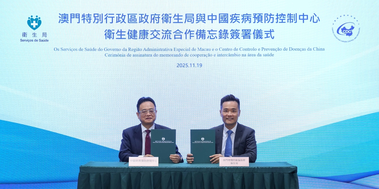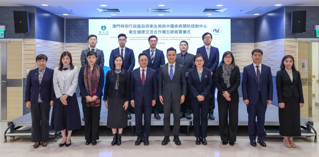 卫生局罗奕龙局长、疾病预防控制中心梁亦好主任及公共卫生化验所吕绮玲主任等,昨(19)日与中国疾病预防控制中心王健伟主任率领的代表团举行座谈会,双方签署了《卫生健康交流合作备忘录》,进一步加强在传染病防控、慢性病综合防控及公共卫生领域的合作。