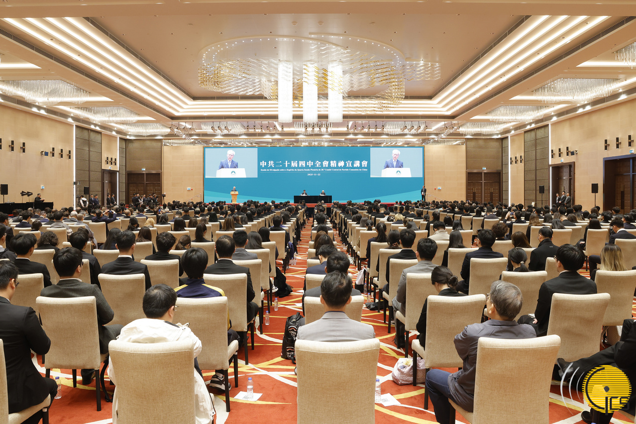 澳门特区政府今(22)日下午举办第二场“中共二十届四中全会精神宣讲会”,中央宣讲团成员,中国科学院院长、党组书记侯建国和中央宣讲团成员,中央财经委员会办公室副主任、中央农村工作领导小组办公室副主任祝卫东,向本澳社会各界人士代表宣讲全会精神。