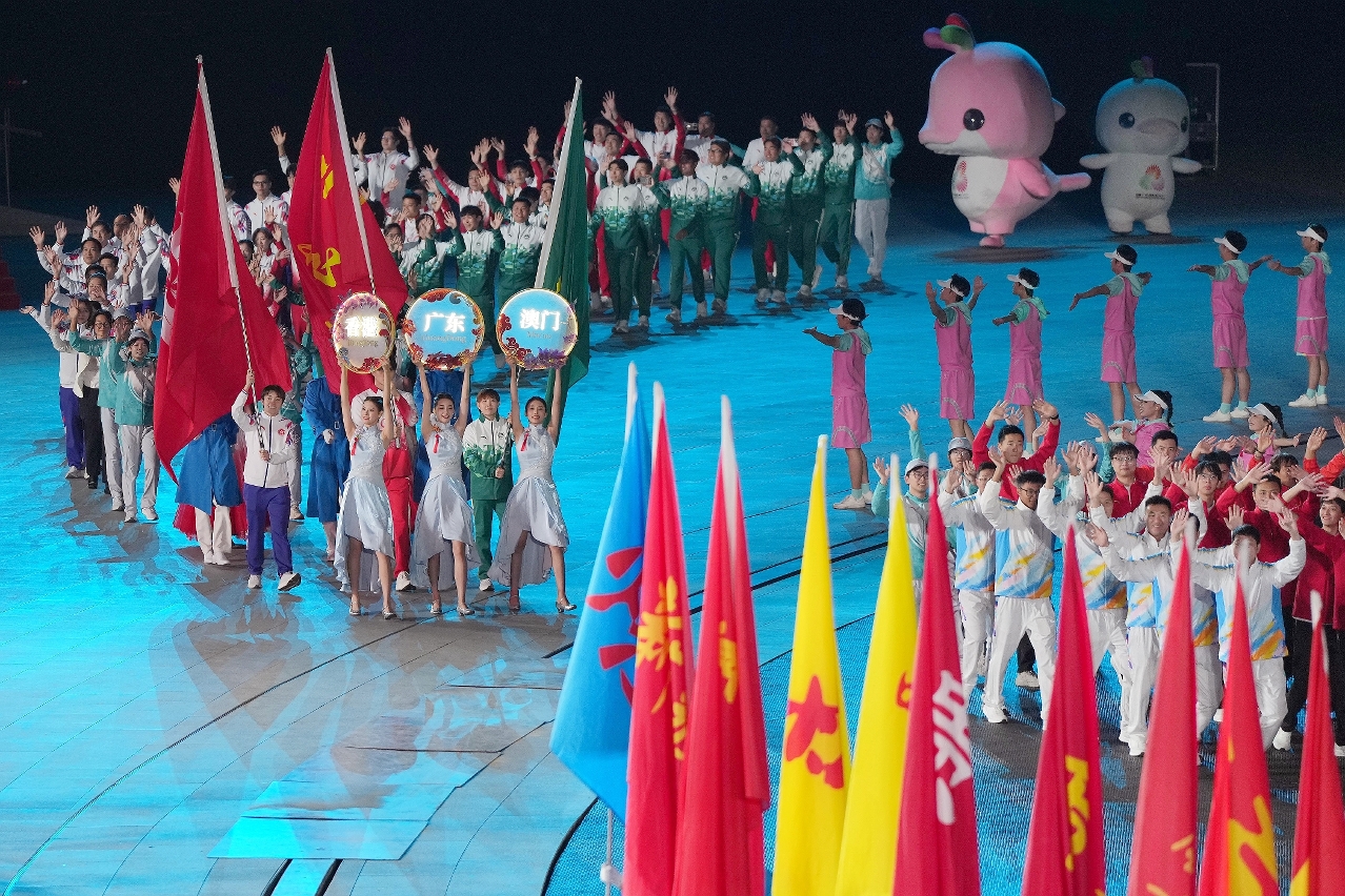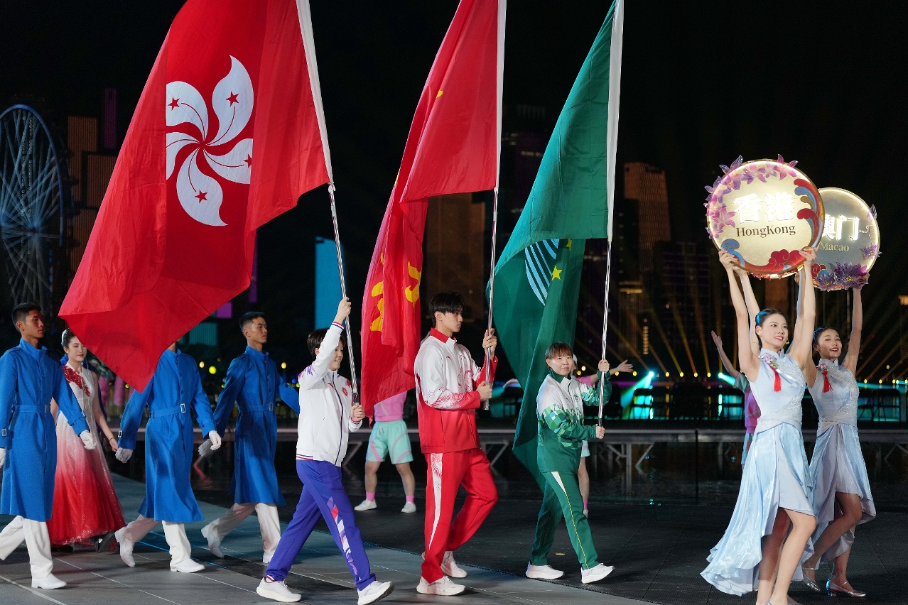 闭幕式上,亦安排了广东网球运动员王欣瑜、香港单车运动员李思颖及澳门空手道运动员郭建恒(KUOK KIN HANG)共同启动闭幕礼倒计时,同时各省市代表团参与了进场仪式,其中澳门体育代表团由乒乓球运动员朱雨玲(ZHU YULING)担任旗手,与广东省及香港体育代表团一起压轴进场,出场时受到现场观众的热烈欢迎。