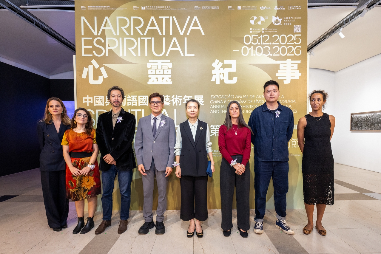 由文化局主办的“心灵纪事──2025中国与葡语国家艺术年展”今日(12月4日)于氹仔龙环葡韵风貌馆开幕,中央人民政府驻澳门特别行政区联络办公室宣传文化部副部长白冰、文化局副局长郑继明、东方葡萄牙学会葡萄牙语中心主任Paula Costa、年展承办单位代表苏约翰、多位参展艺术家及本地文化艺术界人士出席。