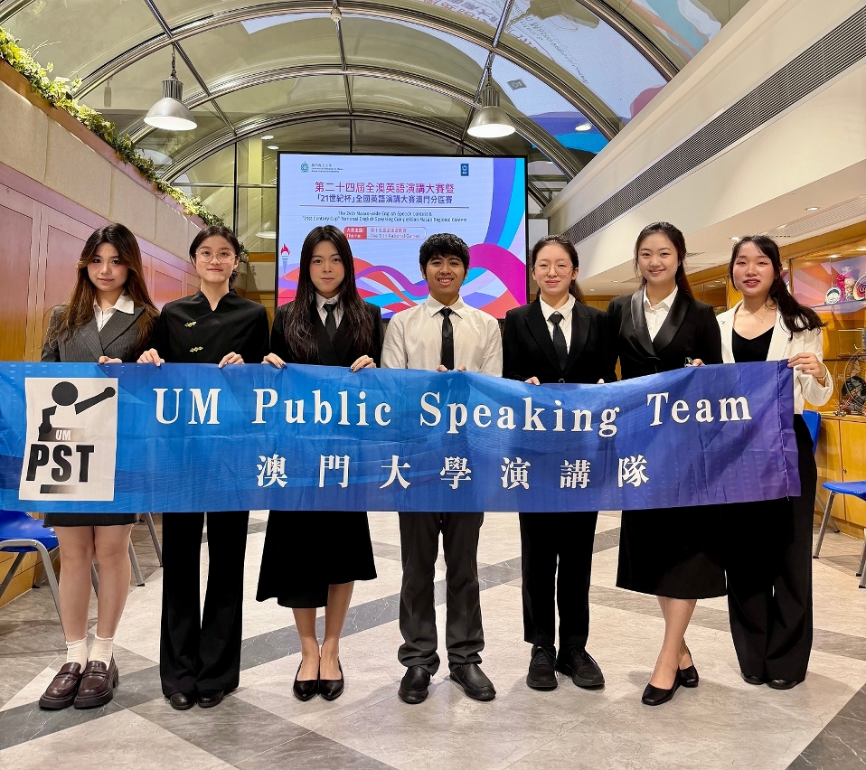澳门大学英语演讲队于第24届全澳英语演讲大赛暨“21世纪杯”全国英语演讲大赛澳门分区赛决赛中,凭藉出色的演讲技巧与优秀的讲辞设计,获得大学组的冠军和亚军殊荣。