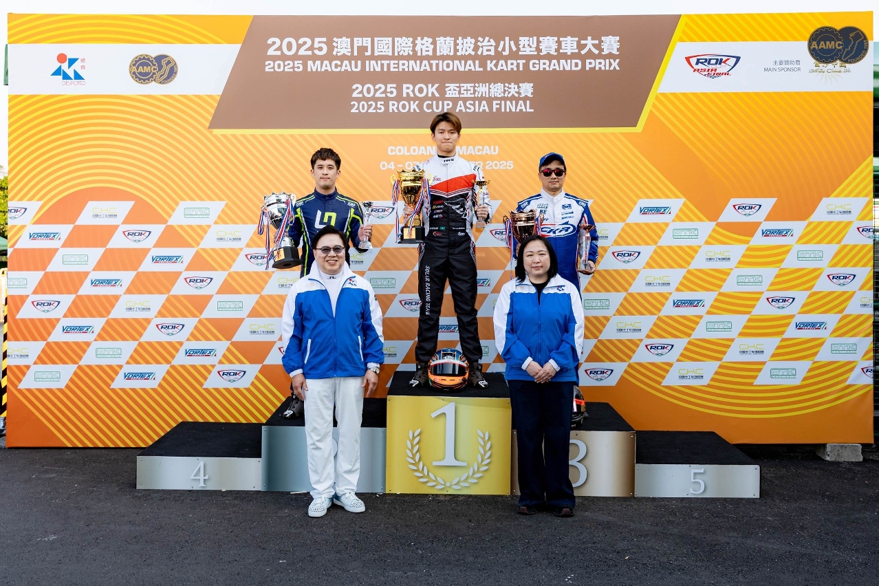 由体育局、中国-澳门汽车总会、OTK小型赛车亚洲区及IAME亚洲区主办,金沙中国有限公司赞助的「2025澳门国际格兰披治小型赛车大赛」于12月4日至7日在路环小型赛车场上演第一周比赛,包括 2025 ROK 杯亚洲总决赛 (迷你ROK组、青少年组、成人组、大师组) 和中国-澳门汽车总会小型赛车赛 (KZ组第八回合、AAMC杯、金沙杯)。各组别决赛成绩如下: