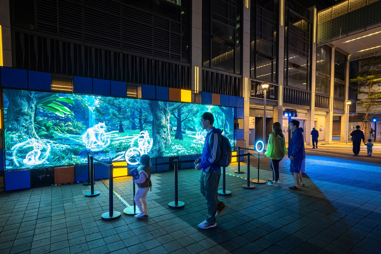同样在东方海岸休憩区的互动装置《城光拾趣》,则由澳门画家赵绍之和澳门青年艺术家林子筠联手合作,利用拍拍灯装置,融入澳门历史文化相关画面,丰富和强化区域的互动性。同场另一互动装置《光影自然》,由澳门青年艺术家黄子沣操刀,结合澳门艺术家所创作的投影丛林动画,通过手影互动的方式,感受大自然中生灵的气息,呈现社区饱满活力。
