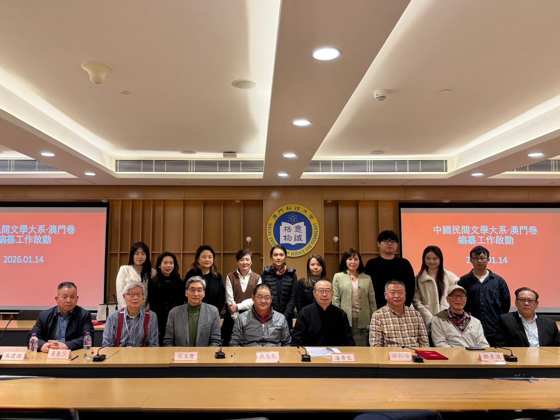由澳门基金会主办的《中国民间文学大系‧澳门卷(一)》编纂工作启动会议,于一月十四日下午六时三十分假澳门科技大学综合教学大楼R座104会议厅举行。中国文学艺术界联合会(中国文联)副主席、中国民间文艺家协会(中国民协)主席、中国民间文学大系出版工程领导小组副组长潘鲁生,澳门基金会行政委员会主席、《大系‧澳门卷(一)》编纂委员会主任吴志良,编纂主编、澳门科技大学人文艺术学院院长张志庆教授,编纂主编、澳门大学人文学院助理教授邵朝阳,团队成员邓景滨、胡国年、邓骏捷、黄光辉、赵曦等,以及澳门基金会活动处处长黄丽莎、高级技术员杨开荆及陈思恩等二十余人出席会议。