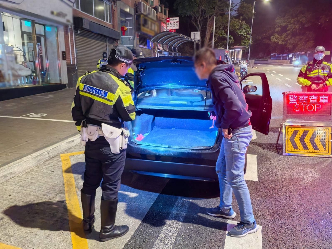 在警察总局统筹下,治安警察局于昨(3)日持续进行“冬防行动2026”,以维护本澳良好治安环境。治安警察局辖下澳门警务厅、交通厅、情报厅、特警队及辖下警犬组共派出56名人员,分别巡查澳门各区多间按摩场所、卡啦OK及酒吧,同时在在澳门中区、新口岸区、北区及路氹城金光大道一带加强截查可疑人士,并进行不定点查车行动,以预防及打击各种不法行为和犯罪活动。