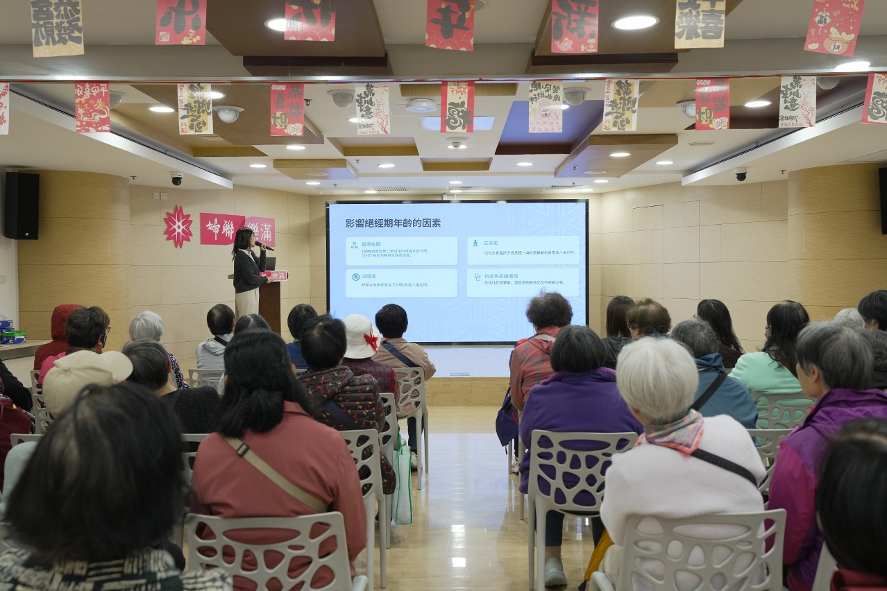 同日,亦为澳门妇女联合总会举办“走进社区”系列健康专题讲座,由协和澳门医学中心妇产科古少君主治医生主讲,主题为“如何从容拥抱更年期?”,为大家讲解更年期的生理变化、常见症状以及科学应对策略。她分享了关于如何通过合理的饮食、适度的运动、积极的心态来有效管理这一特殊时期,鼓励大家从容面对更年期这一个重要的人生阶段。