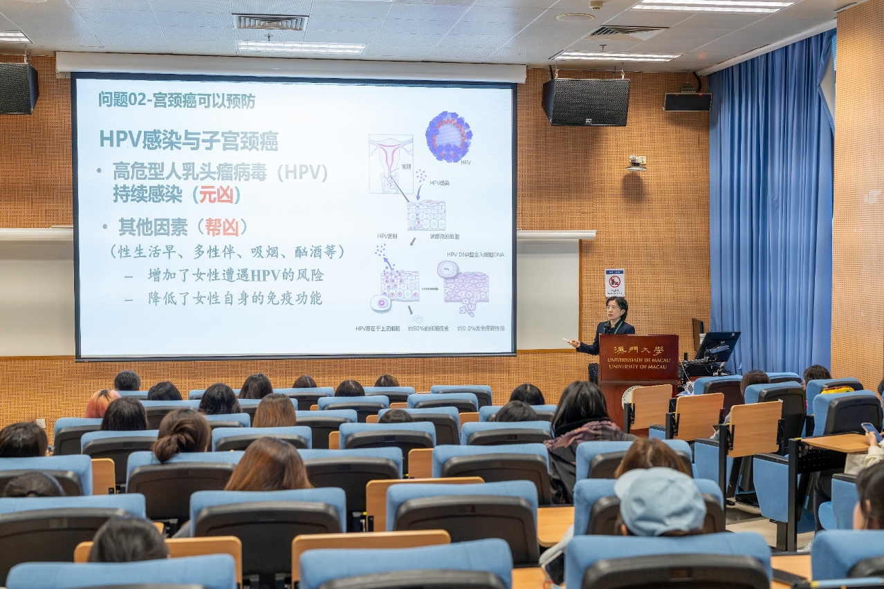 继体验日之后,另一场聚焦女性健康需求的讲座于3月10日在澳门大学校园内举行。主题为“科学守护女性”的健康讲座吸引了众多女性教职员及学生到场参与,讲座旨在透过专业的医学视角,探讨两性与性健康知识,引导大学生以理性的态度认识自我,以及讲解如何透过有效措施预防包括子宫颈癌等女性常见的疾病。