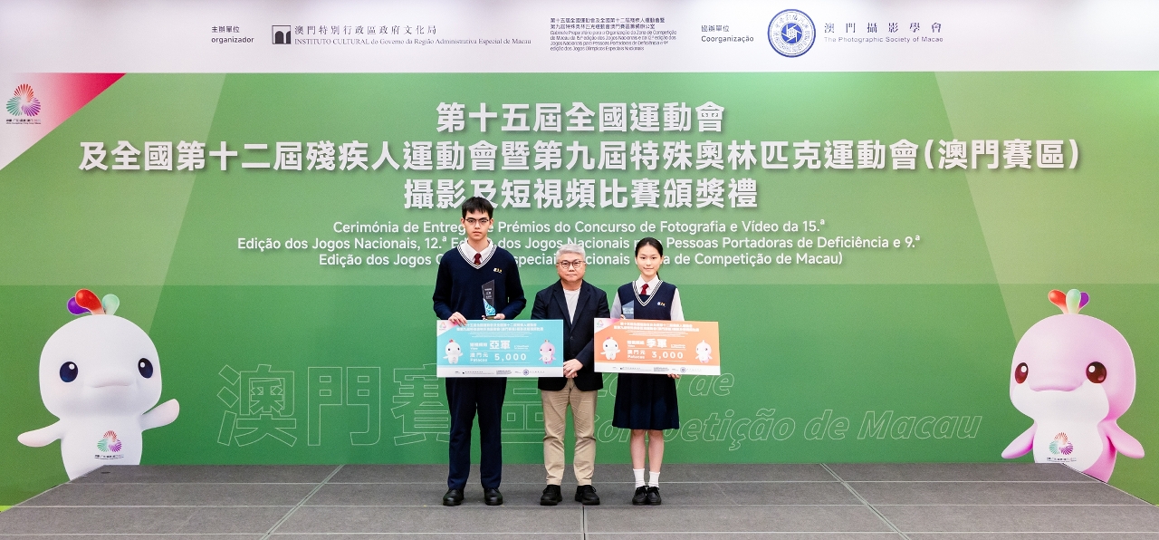 由文化局与第十五届全国运动会及全国第十二届残疾人运动会暨第九届特殊奥林匹克运动会澳门赛区筹备办公室联合主办、澳门摄影学会协办的第十五届全国运动会及全国第十二届残疾人运动会暨第九届特殊奥林匹克运动会(澳门赛区)摄影及短视频比赛,今日(3月14日)在澳门文化中心举行颁奖礼,表扬一众优秀创作者藉镜头捕捉及记录运动员的矫健英姿、赛事的精彩瞬间,以及观众热情参与的欢乐时刻。