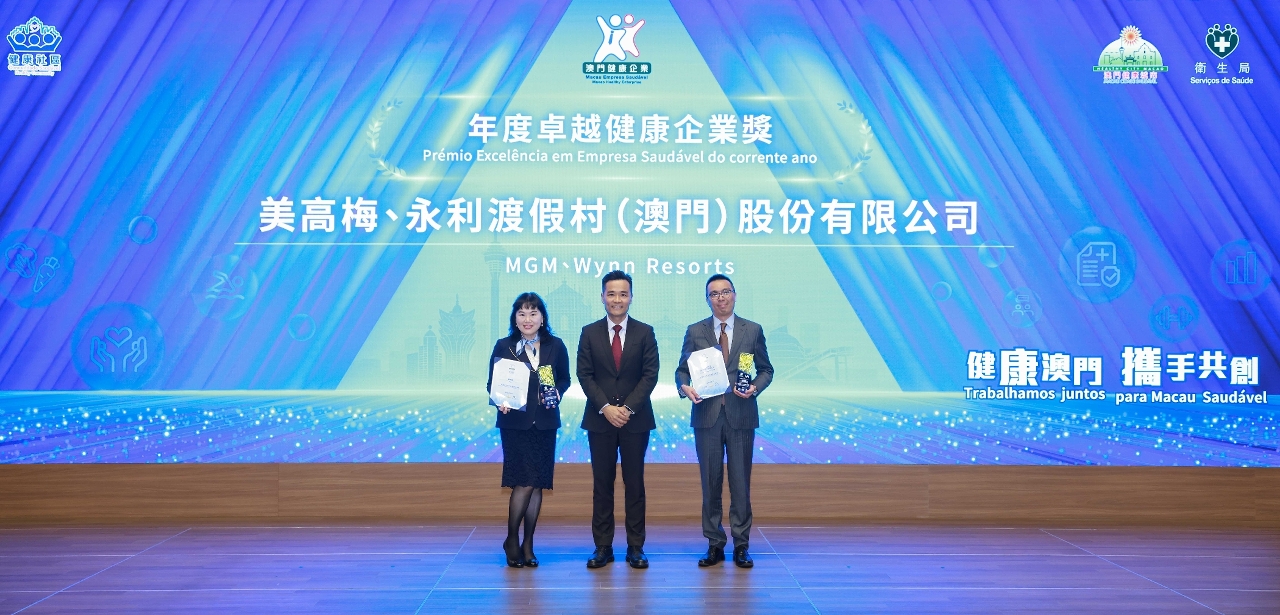 荣获2025年度“卓越健康企业奖”的企业(排名不分先后)包括:美高梅、永利渡假村(澳门)股份有限公司、澳门电力股份有限公司、澳门中银、新中物业管理(澳门)有限公司及澳门科学馆。