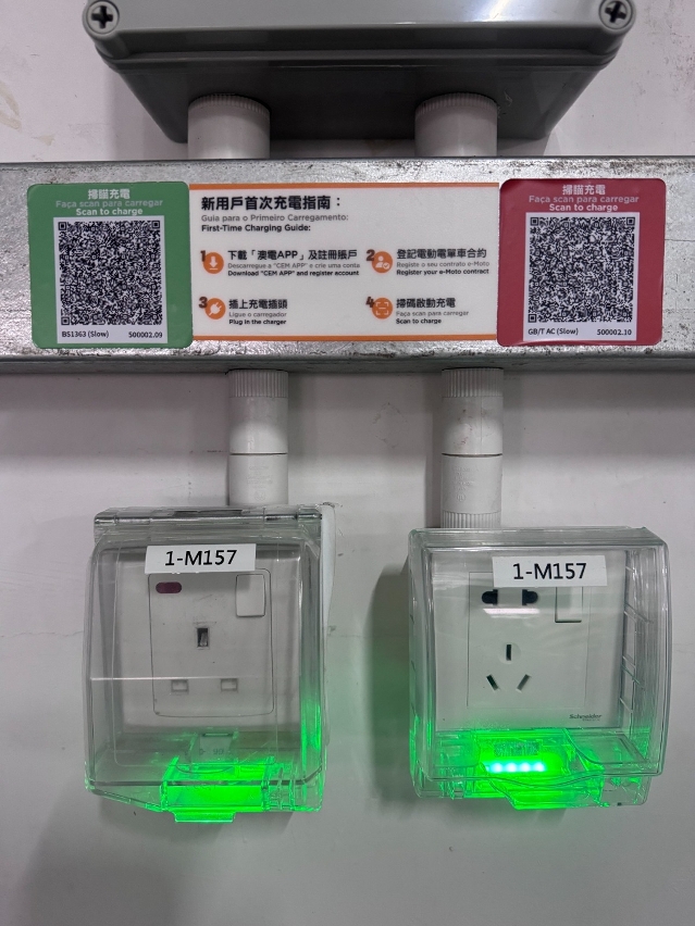 为持续完善电动车相关充换电配套设施及提升电动电单车的充电安全及便利性,特区政府协调澳电于去年完成增设及升级电动电单车的充电插座。目前本澳57个公共停车场共有946个电动电单车充电位,每个充电车位均设有双制式(英标及国标)的插座,并于本澳7处街区位置供设置电动电单车换电柜。
