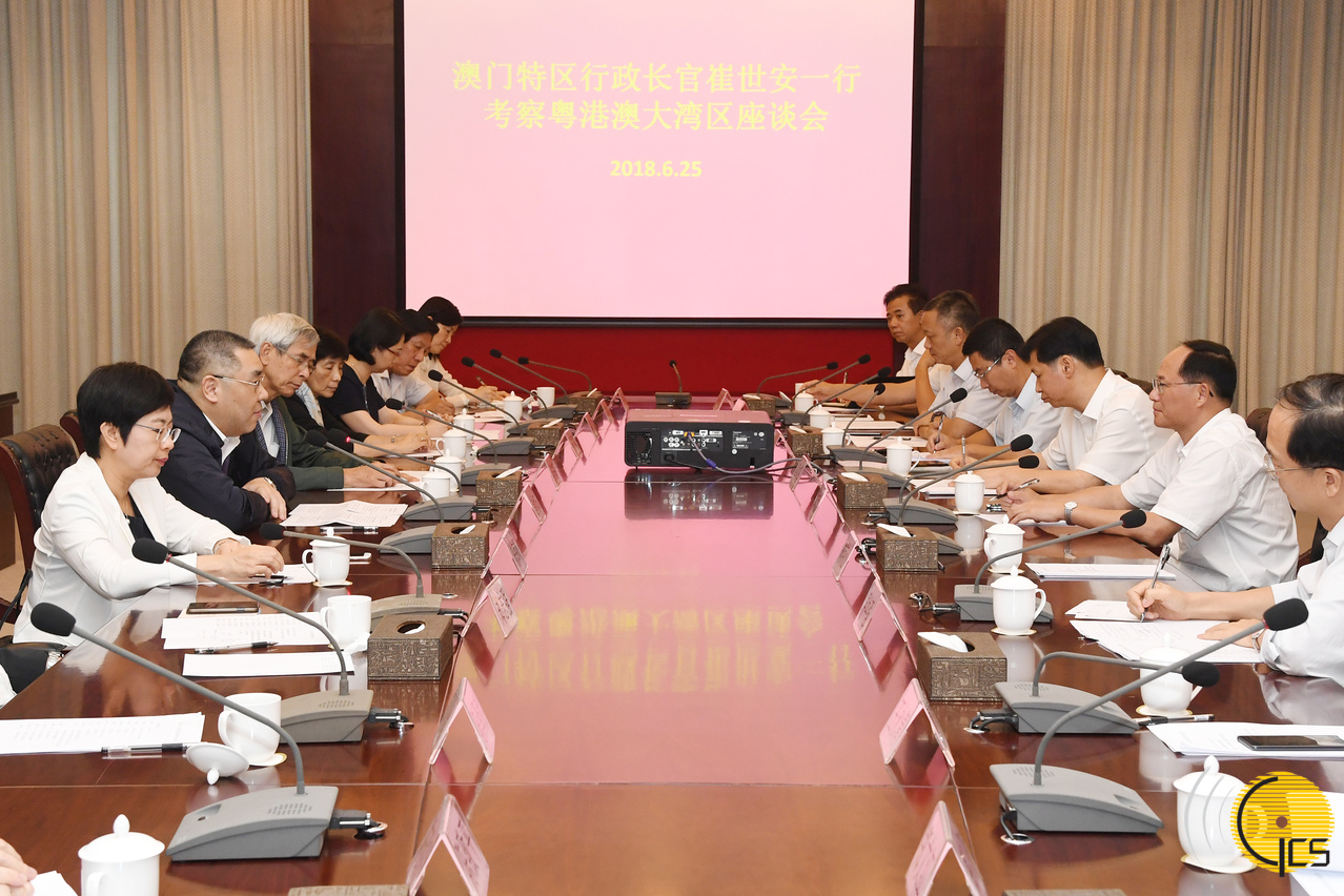 正在江門訪問的行政長官崔世安與江門市委書記林應武會面,共同出席江門-澳門政府座談會。
