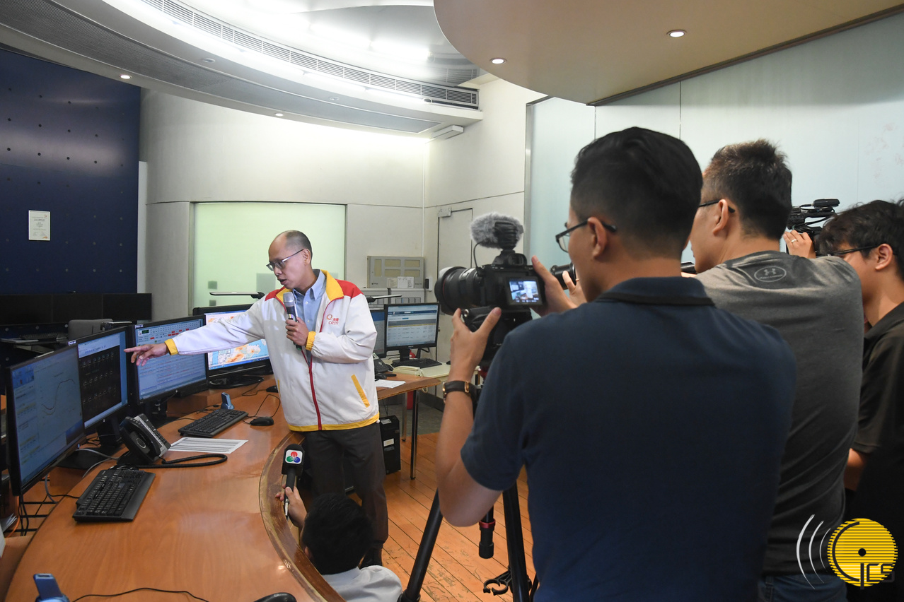 特區政府防災減災工作—澳門電力股份有限公司代表介紹調度中心控制室的設施和洪水警報系統的運作。