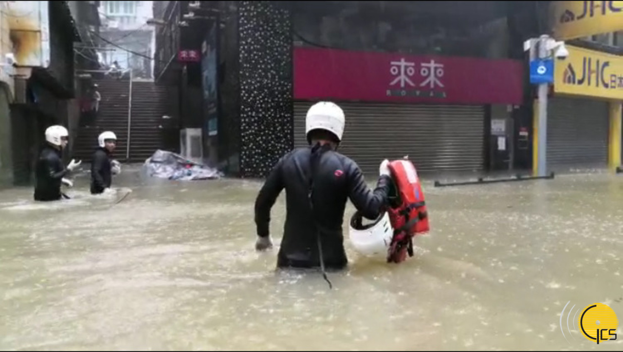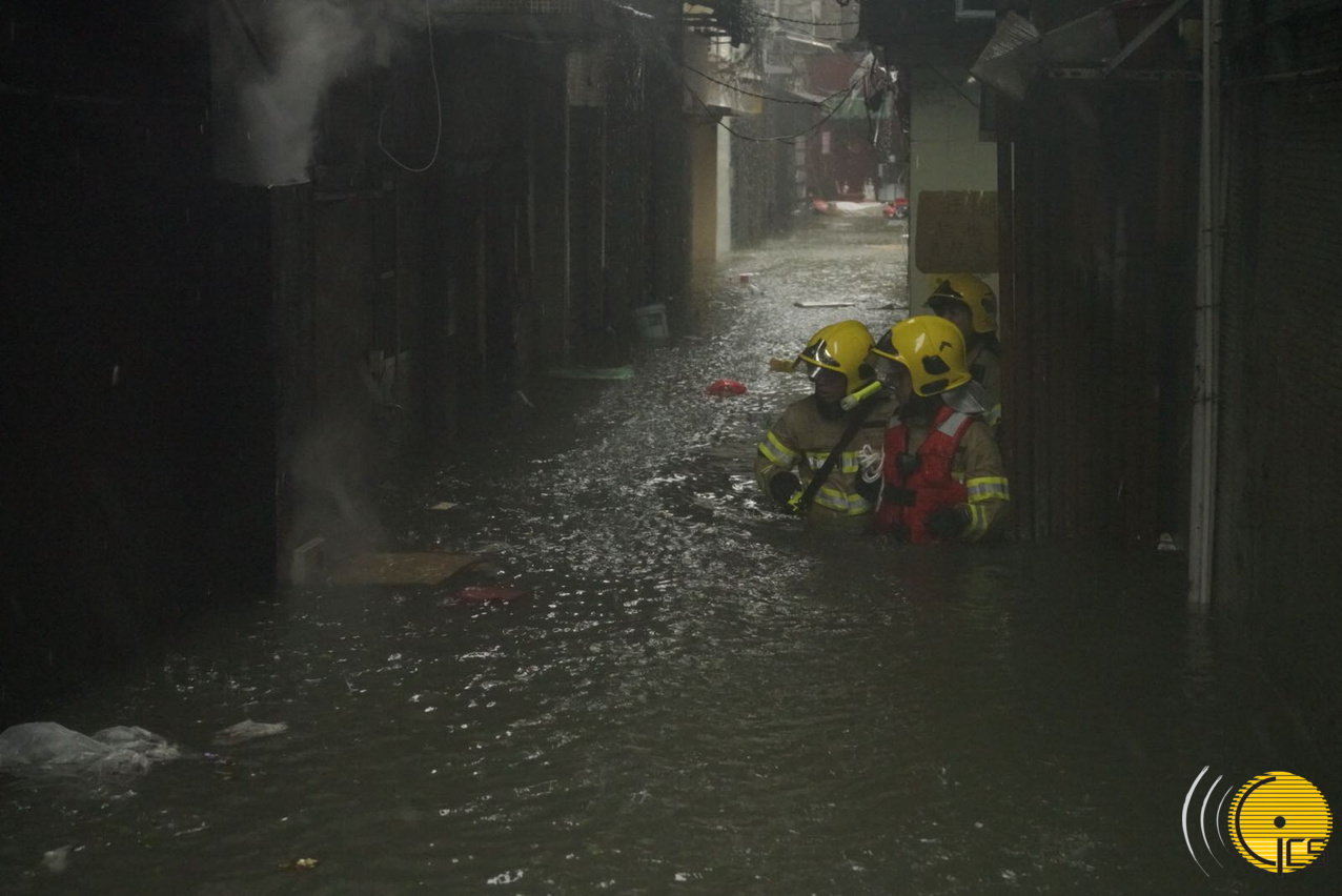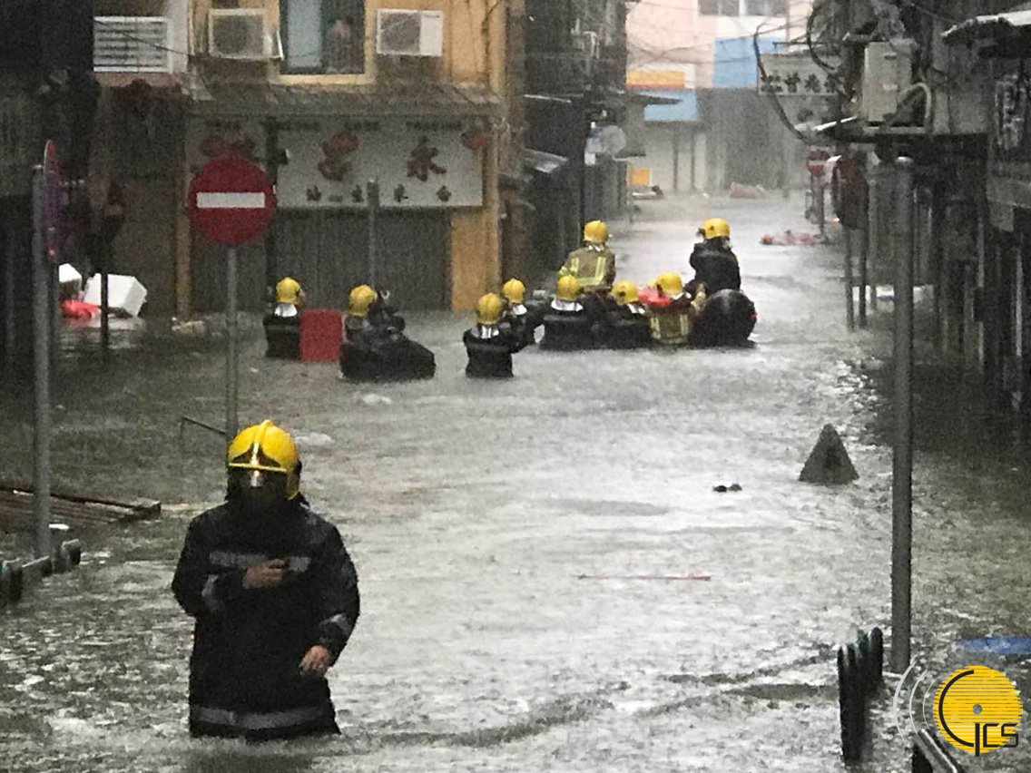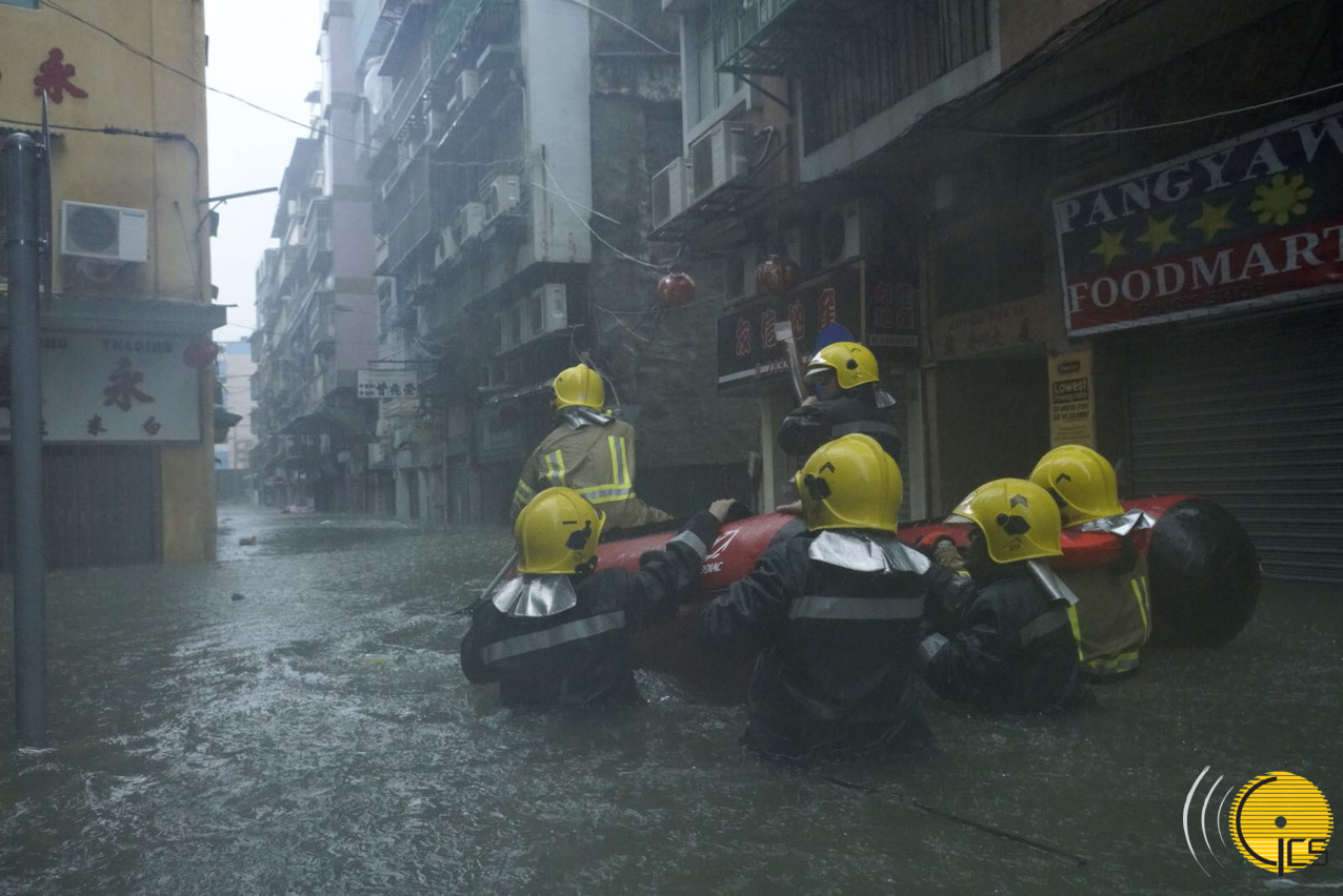 保安部隊及部門人員在全澳各區開展救援工作,並持續協助區內居民進行撤離。