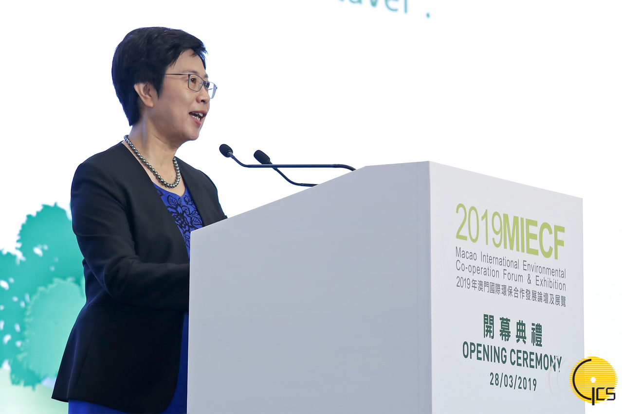代理行政長官陳海帆在“2019澳門國際環保合作發展論壇及展覽”(MIECF)開幕典禮上致辭