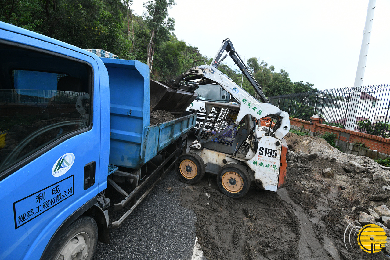 “水晶魚2019”演習-市政署聯同澳門建築機械工程商會,就山體滑坡進行清障工作。