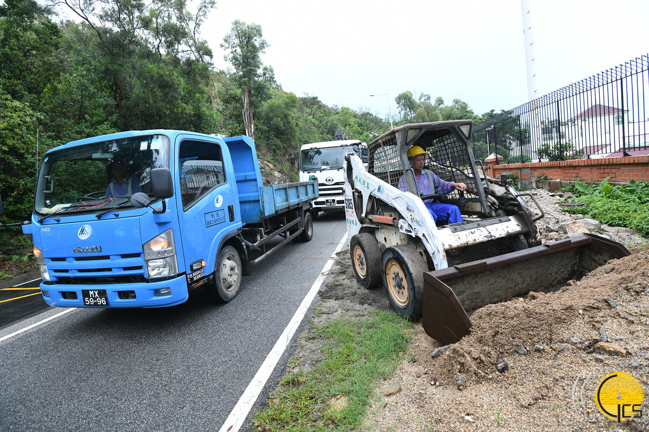 “水晶魚2019”演習-治安警察局聯同建築公司填補受颱風影響而出現凹陷的路面。