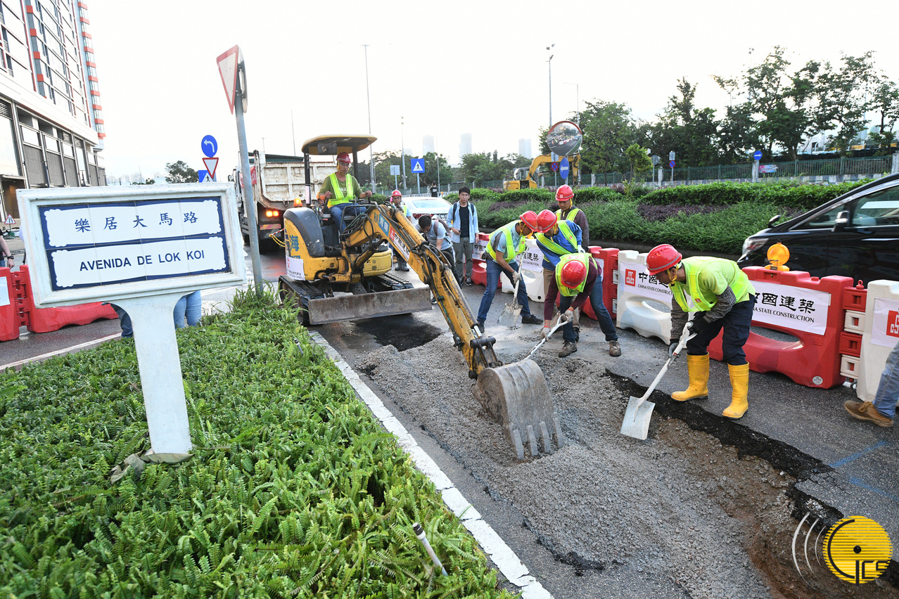 “水晶魚2019”演習-治安警察局聯同建築公司填補受颱風影響而出現凹陷的路面。