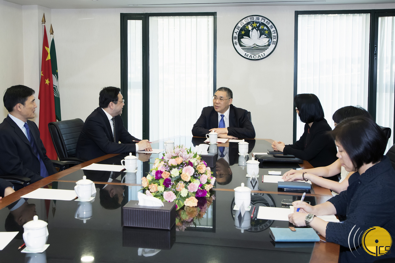 行政長官崔世安會見江蘇省委常委、省委統戰部部長楊岳(左二)一行