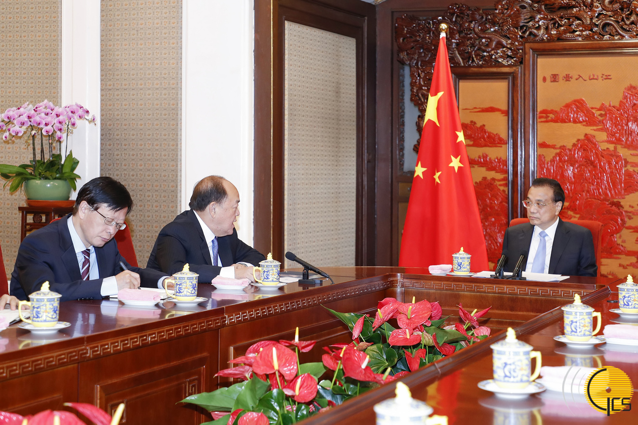 國務院總理李克強接見澳門特別行政區第五任行政長官賀一誠
