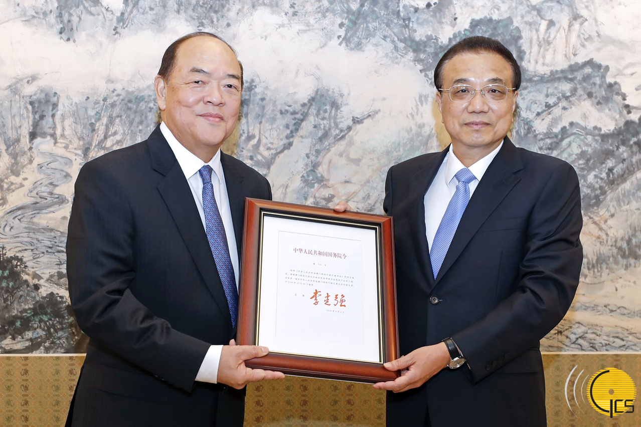 國務院總理李克強向賀一誠頒發國務院任命澳門特別行政區第五任行政長官的國務院第719號令