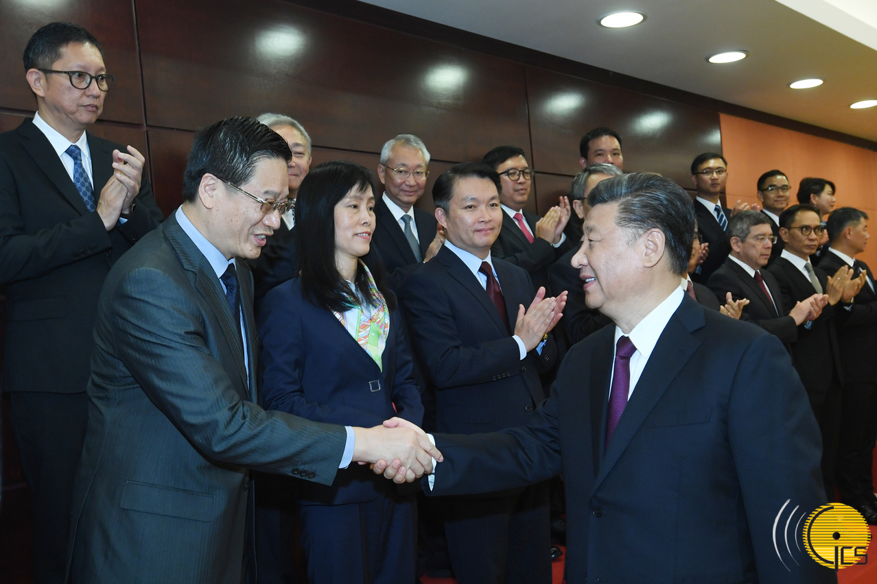 國家主席習近平與澳門特區新任行政、立法、司法機關主要負責人親切握手。