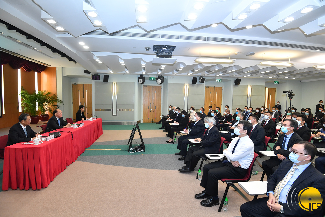 鍾南山院士(左)在政府總部與本澳參與抗疫的部門和醫護界等人士分享防控新冠肺炎疫情的經驗