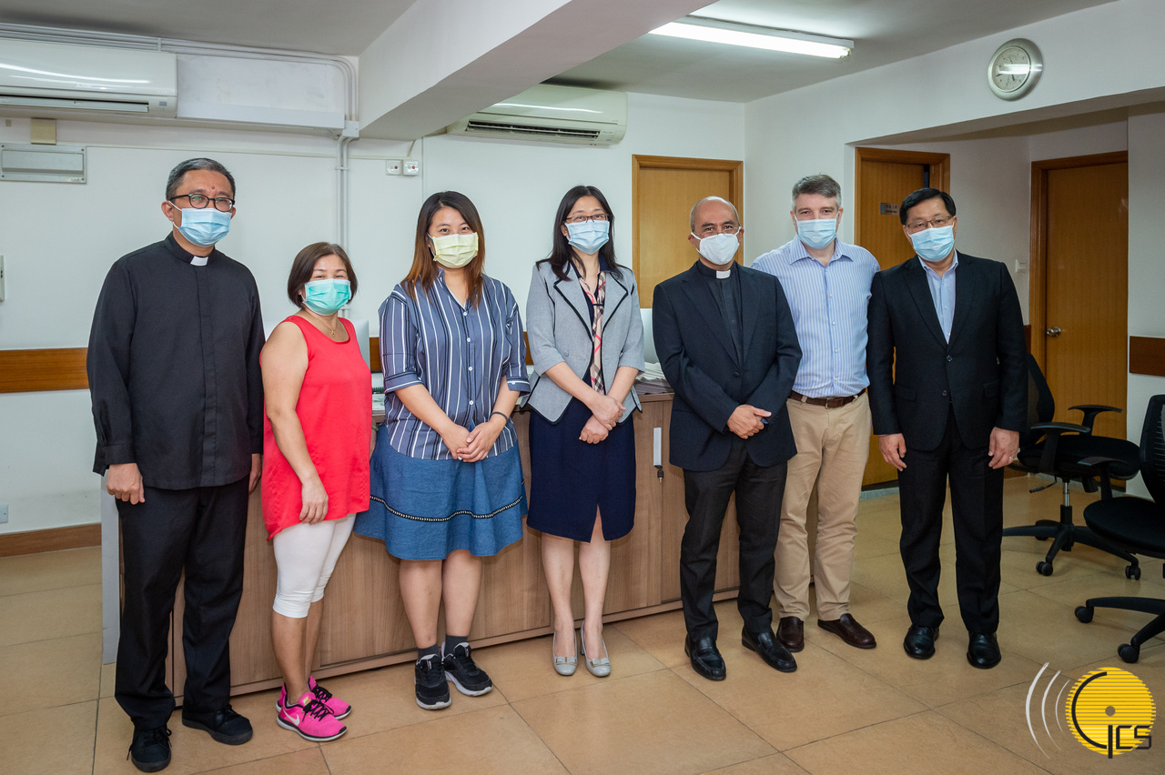 新聞局局長陳露(中)、副局長黃樂宜(右一)與葡文報章《O Clarim》社長文祖賢神父(右三)等合照。